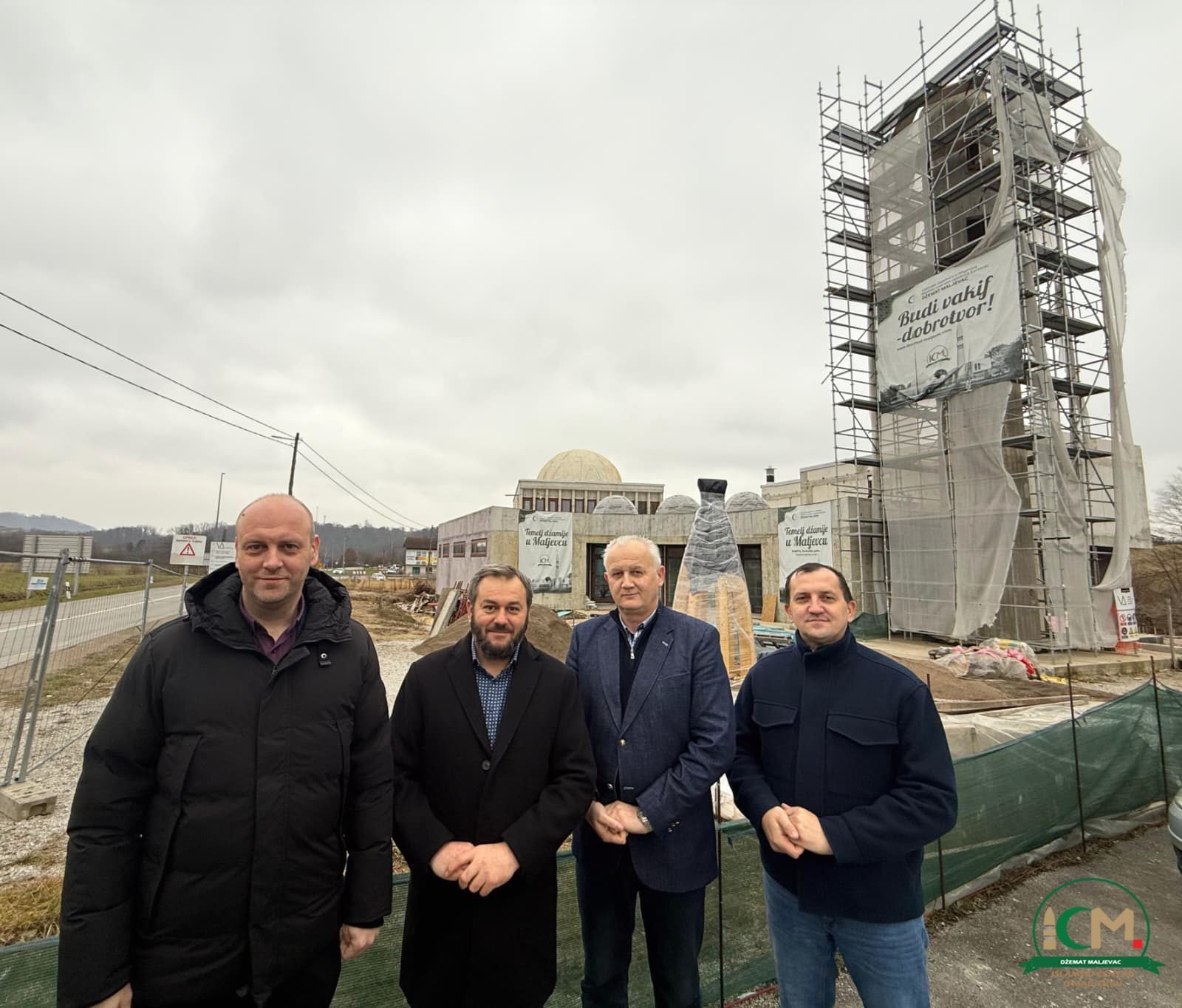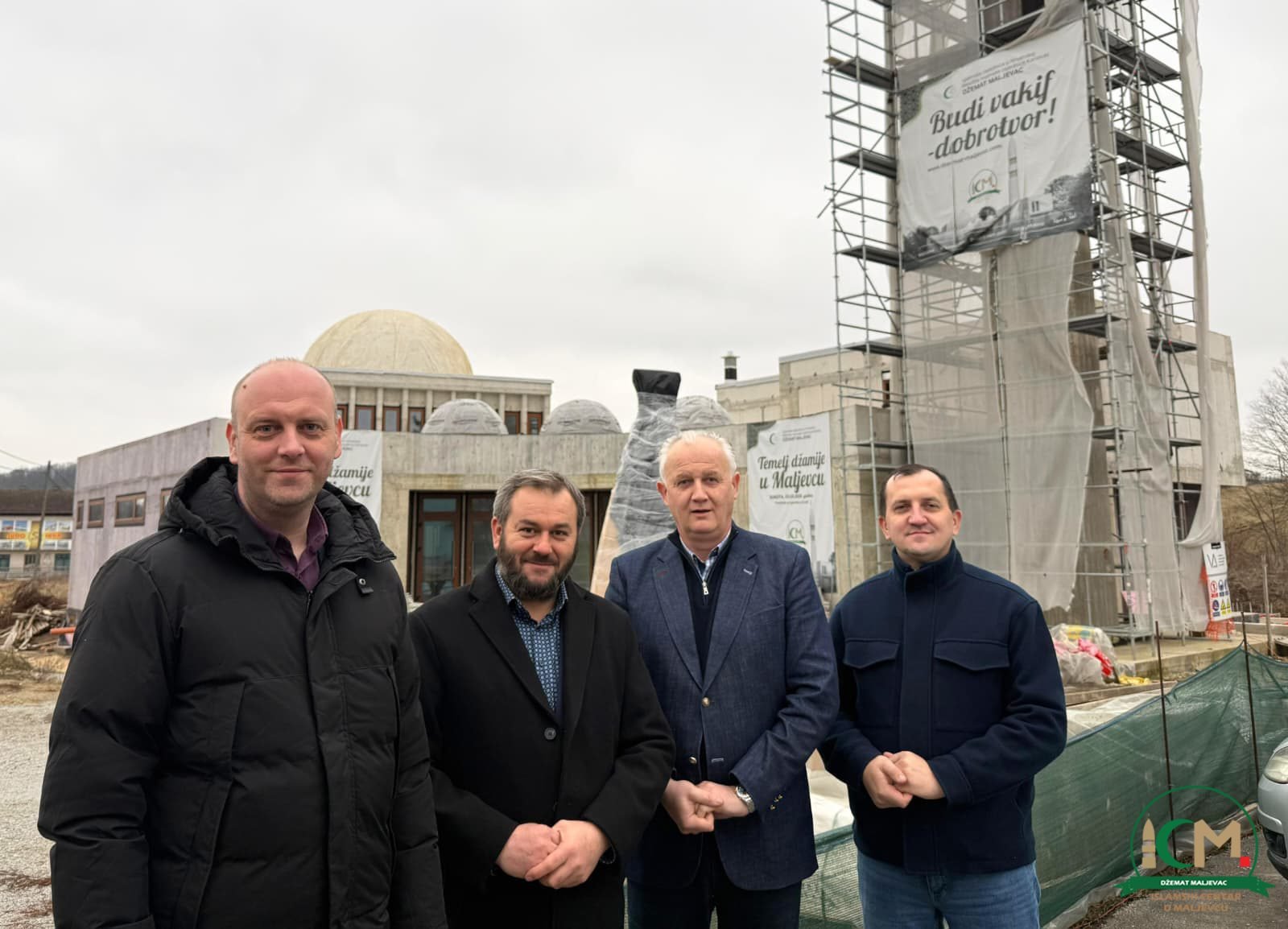 Jučer je gradilište Islamskog centra u Maljevcu posjetila delegacija Mešihata Islamske zajednice u Hrvatskoj gdje su bili mr. Nermin ef. Botonjić, pomoćnik predsjednika Mešihata za upravljanje procesima i dr. Mirza Šabić, član Mešihata i dopredsjednik Sabora Islamske zajednice u BiH. Kroz gradilište su ih proveli Osman Bašić, predsjednik Džematskog odbora, i volonter Aziz Muhić, upoznavši delegaciju s tijekom izgradnje od samih početaka do danas, uz poseban naglasak na dinamiku radova, organizaciju i ulogu zajednice.